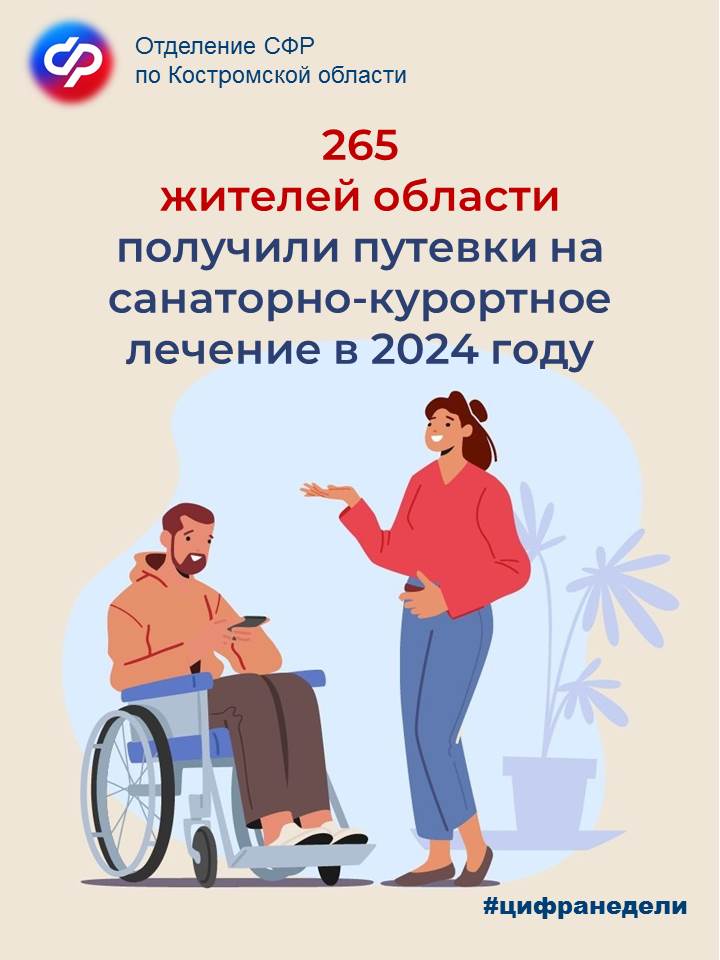 С начала года Отделение СФР по Костромской области обеспечило путевками на санаторно-курортное лечение 265 жителей региона на общую сумму 8,2 миллиона рублей.