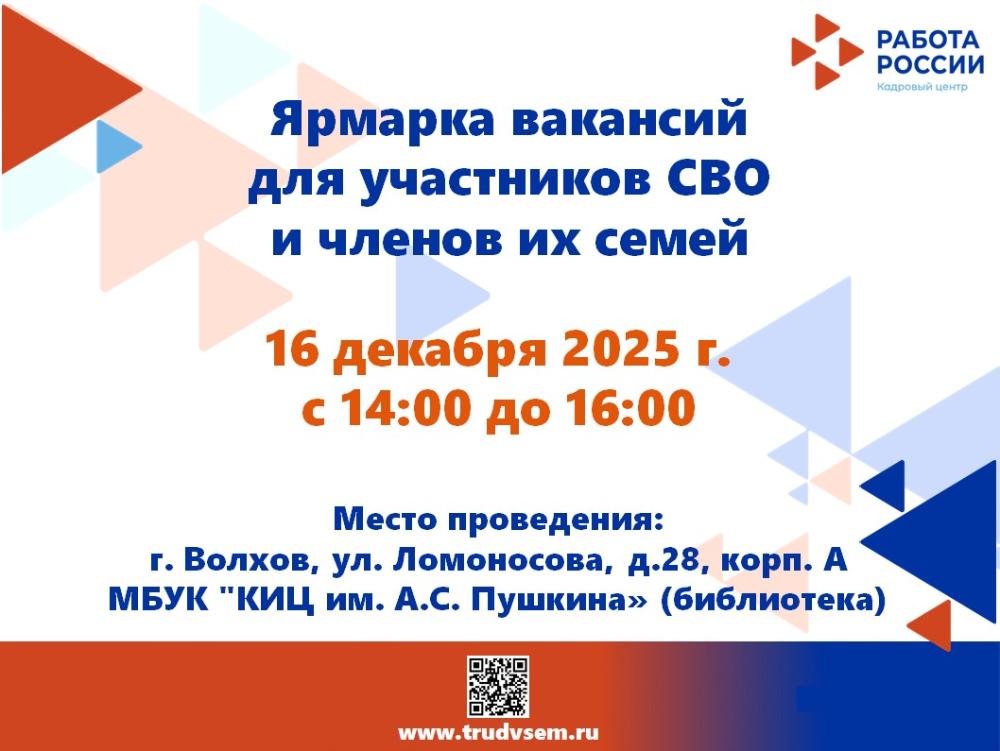 Волховский кадровый центр приглашает на ярмарку вакансий для участников специальной военной операции и членов их семей!